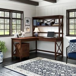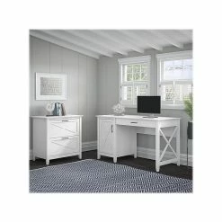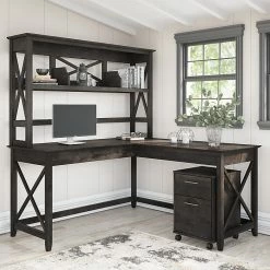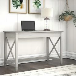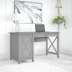 Bush Furniture Key West 54″ Corner Computer Desk With Storage, Washed Gray (KWD254WG-03)