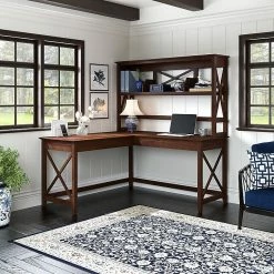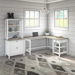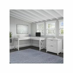 Bush Furniture Key West 60″ L-Shaped Desk With Lateral File Cabinet, Pure White Oak (KWS014WT)