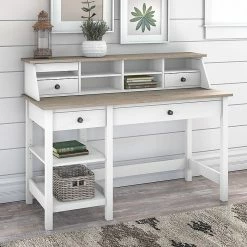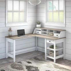 Bush Furniture Mayfield 54″ Computer Desk With Drawers, Pure White/Shiplap Gray (MAD254GW2-03)