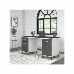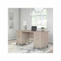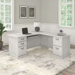 Bush Furniture Saratoga 66″ L-Shaped Computer Desk With Drawers, Linen White Oak (EX45770-03K)