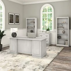 Bush Furniture Somerset 60″W L-Shaped Desk With Hutch And Lateral File Cabinet, White (SET008WH)