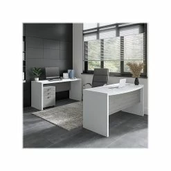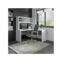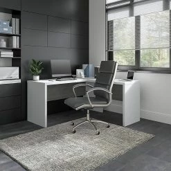 Office By Kathy Ireland® Echo 60″W L-Shaped Desk, Pure White/Modern Gray (ECH026WHMG)