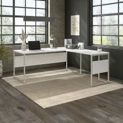 Bush Business Furniture Hybrid 72″ L-Shaped Table Desk With Metal Legs, White (HYB025WH)