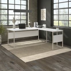 Bush Business Furniture Hybrid 72″ L-Shaped Table Desk With Metal Legs, White (HYB026WH)