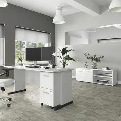 Bush Business Furniture Studio A 72″ L-Shaped Gaming Desk With Storage, White (STA012WH)