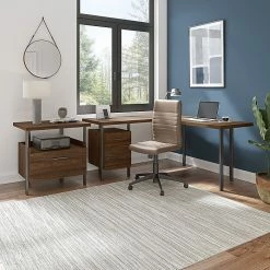 Bush Furniture Architect 60″W L-Shaped Desk With Lateral File Cabinet, Modern Walnut (ACT004MW)