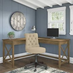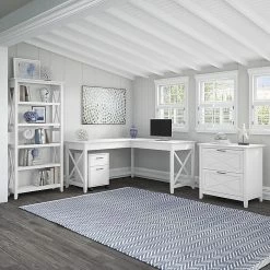 Bush Furniture Key West 60″ L-Shaped Desk With Lateral File Cabinet, Pure White Oak (KWS014WT)