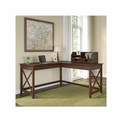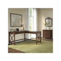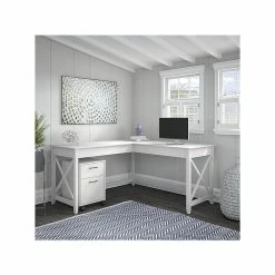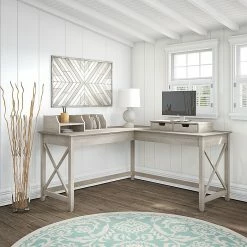 Bush Furniture Key West 60W L Shaped Desk With Lateral File Cabinet, Washed Gray (KWS014WG)