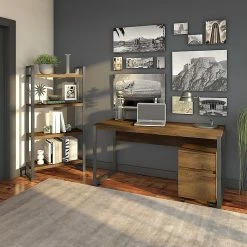 Bush Furniture Key West Laptop Storage Desk Credenza With 5 Shelf Bookcase, Bing Cherry (KWS012BC)