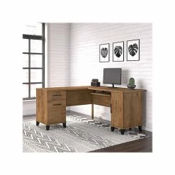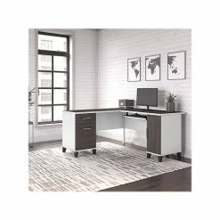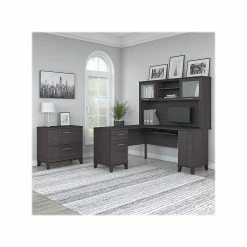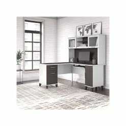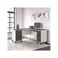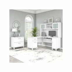 Bush Furniture Somerset 60″W L-Shaped Desk With Hutch And Lateral File Cabinet, White (SET008WH)
