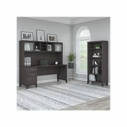 Bush Furniture Somerset 72″ Computer Desk With Hutch And 5-Shelf Bookcase, Storm Gray (SET020SG)