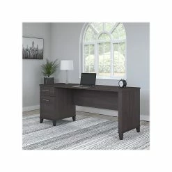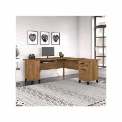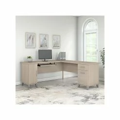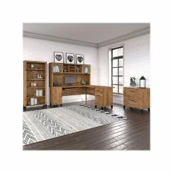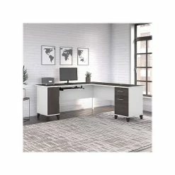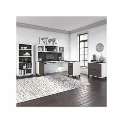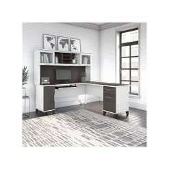 Bush Furniture Somerset 72″W L-Shaped Desk With Hutch And 5-Shelf Bookcase, Storm Gray (SET011SG)