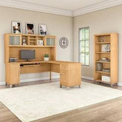 Bush Furniture Somerset 72W L Shaped Desk With Hutch And 5 Shelf Bookcase, Maple Cross (SET011MC)