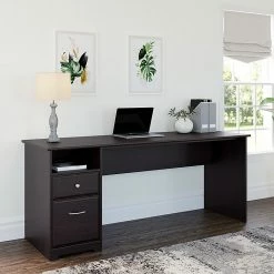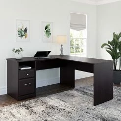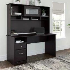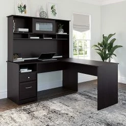Bush Furniture Cabot 60W L Shaped Computer Desk With Hutch And Drawers, Espresso Oak (CAB046EPO)