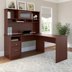 Bush Furniture Cabot 60W L Shaped Computer Desk With Hutch And Drawers, Harvest Cherry (CAB046HVC)