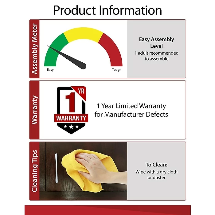 - The sleek black finish on the laminated MDF and particleboard will easily fit with your existing décor