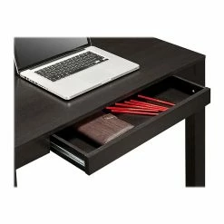 Redefine your workspace or any room in your home with the sleek, minimalist lines of this attractive Ameriwood Home Parsons Desk with Drawer. The Desk features a small center storage drawer that’s perfect for pens, paper, computer peripherals and other small office supplies. Don’t let your workspace suffer when you have nice, affordable options with this laminated particleboard and MDF desk. Parsons Desk top comes preassembled, just attach the 4 legs to finish the assembly.