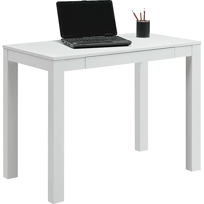 Redefine your workspace or any room in your home with the sleek, minimalist lines of this attractive Ameriwood Home Parsons Desk with Drawer. This Desk is designed with classic parsons styling that includes a simple silhouette with clean lines.