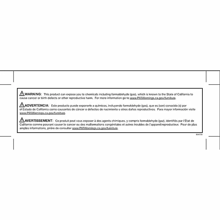 - âš WARNING: This product can expose you to chemicals including formaldehyde, which is known to the State of California to cause cancer or birth defects or other reproductive harm. For more information go to www.P65Warnings.ca.gov/furniture.
