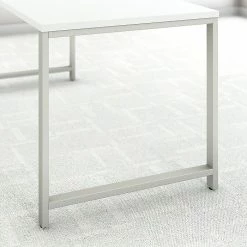 This Bush Business Furniture 400 Series Table Desk inspires creativity with a sturdy construction and refreshingly contemporary looks. The Table Desk mixes open metal legs with a wooden work surface, providing space to spread out and ample legroom. Sturdy Desk legs boast a welded steel tube construction, while the thermally fused laminate finish and impact resistant edges fend off damage for a long-lasting professional appearance. Adjustable levelers compensate for uneven flooring. This Table Desk with metal legs makes a nice addition to a private or home office, but also works well in an open plan environment. Backed by a Limited Lifetime Warranty, this commercial office furniture meets ANSI/BIFMA quality test standards. See the full collection for coordinating items available and design your workspace your way with the 400 Series. American made with U.S. and imported parts.