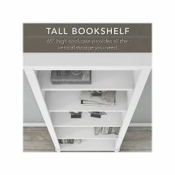 The transitional Bush Business Furniture Somerset 71″W L-shaped desk with hutch and five-shelf bookcase offers an ideal solution for the home or small office. With practical features and stylish design, the desk with hutch and five-shelf bookcase delivers a perfect personal workspace. The 71″W surface with wire management offers ample room to spread out while a pull-out shelf for a keyboard or laptop, vertical cabinet, box drawer, and file drawer offer plenty of storage. The hutch features a large open compartment and two frosted glass doors for concealed storage. Two of the bookcase’s shelves are fixed for stability and three are adjustable to ensure that items of all sizes have their place. Transitional styling includes your choice of attractive finishes with tapered leg accents and contemporary metal hardware. This home office furniture set is tested to meet ANSI/SOHO quality standards for safety and performance and is backed by the Bush Business Furniture 6-year manufacturer warranty.