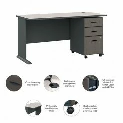 - Bundle includes: 60W x 27D Desk, 3 Drawer Mobile File Cabinet