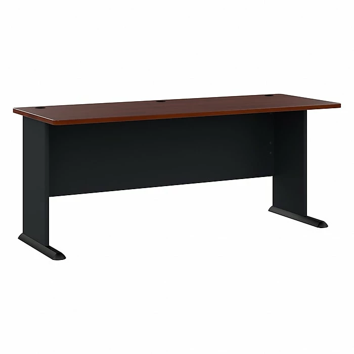 Enjoy loads of workspace and legroom with the Bush Business Furniture Cubix 72W Desk. An open C-Leg design creates user comfort while wire management grommets keep computer cables out of your way. Spread out with a laptop, printer and more on the scratch-resistant thermally fused laminate surface. Durable edge banding and thick end panels fend off damage to ensure lasting quality. Sturdy Desk feet include encapsulated steel armature and adjustable levelers for use on all types of flooring. Use the Desk in a home or business office or even in a classroom with enough workspace for one or two students. Cubix offers a variety of layout options and multiple two-tone finishes. Backed by a 10 Year Warranty. American made with U.S. and imported parts.