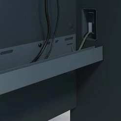 - Wire management system includes leg and desktop grommets with a channel on the modesty panel to keep cables under control