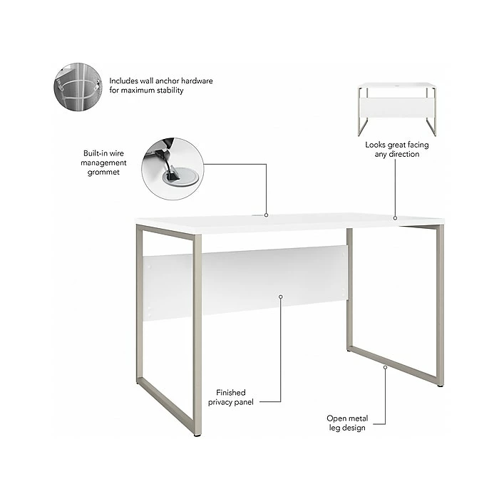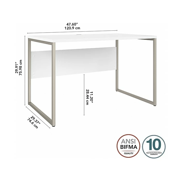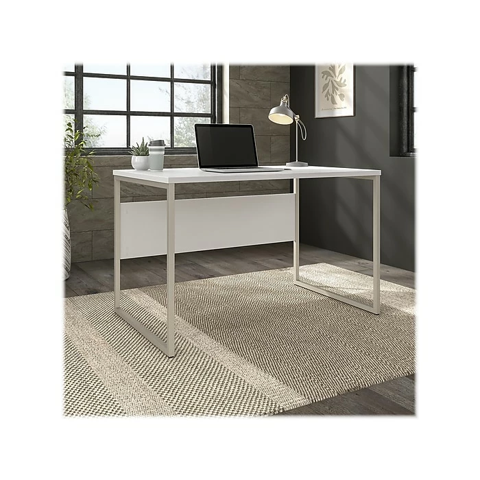 The Bush Business Furniture Hybrid 48″W x 30″D computer table desk blends a durable wood work surface with sturdy metal legs to offer a stylish, long-lasting solution for the modern professional. Tackle your next project or assignment with a computer and books.