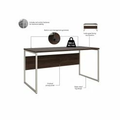 The Bush Business Furniture Hybrid 60″W x 30″D computer table desk blends a durable work surface with sturdy metal legs to offer a stylish, long-lasting solution for the modern professional. Tackle your next project or assignment with a computer, books, paperwork, and more on a desktop that supports up to 200 lbs. Two built-in wire management grommets keep cords and cables in order, so your work area remains free from unnecessary clutter. The computer desk’s open leg design and finished privacy panel allow it to look great facing any direction in a home or professional office environment. Find the perfect look for your space with five contemporary finish options: black walnut, modern hickory, platinum gray, storm gray, and white. This modern desk has been meticulously tested to meet or exceed ANSI/BIFMA quality standards for safety, durability, and performance and is backed by the Bush Business Furniture 10-year manufacturer warranty. See the full Hybrid collection for coordinating items to enhance your workspace as needed, including file cabinets, bookcases, and storage cabinets (coordinating items sold separately). American-made with US and imported parts.