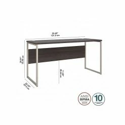 The Bush Business Furniture Hybrid 60″W x 24″D computer table desk blends a durable work surface with sturdy metal legs to offer a stylish, long-lasting solution for the modern professional. Tackle your next project or assignment with a computer, books, paperwork, and more on a desktop that supports up to 200 lbs. Two built-in wire management grommets keep cords and cables in order, so your work area remains free from unnecessary clutter. The computer desk’s open leg design and finished privacy panel allow it to look great facing any direction in a home or professional office environment. Find the perfect look for your space with five contemporary finish options: black walnut, modern hickory, platinum gray, storm gray, and white. This modern desk has been meticulously tested to meet or exceed ANSI/BIFMA quality standards for safety, durability, and performance and is backed by the Bush Business Furniture 10-year manufacturer warranty. See the full Hybrid collection for coordinating items to enhance your workspace as needed, including file cabinets, bookcases, and storage cabinets (coordinating items sold separately). American-made with US and imported parts.
