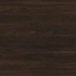 - Modern-style desk is made of engineered wood in a black walnut laminate finish