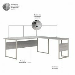 The Bush Business Furniture Hybrid L-shaped table desk with three-drawer mobile file cabinet blends a durable work surface with sturdy metal legs to offer a stylish, long-lasting solution for the modern professional. Tackle your next project or assignment on a desktop that supports up to 200 lbs. and has four built-in wire management grommets to keep cords and cables in order. The corner computer desk’s open leg design and finished privacy panel allows it to look great facing any direction in a home or professional office. The filing cabinet’s bottom drawer holds -letter, -legal, and A4-size paperwork while a pair of box drawers organize supplies. This L-shaped desk with drawers has been meticulously tested to meet or exceed ANSI/BIFMA standards for safety, durability, and performance and is backed by a 10-year manufacturer warranty. American made with U.S. and imported parts.