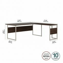 The Bush Business Furniture Hybrid L-shaped table desk blends a durable work surface with sturdy metal legs to offer a stylish, long-lasting solution for the modern professional. Tackle your next project or assignment with a computer, books, and more on a desktop that supports up to 200 lbs. Four built-in wire management grommets keep cords and cables in order, so your work area remains free from unnecessary clutter. The corner desk’s open leg design and finished privacy panel allows it to look great facing any direction in a home or professional office environment. This modern computer desk has been meticulously tested to meet or exceed the ANSI/BIFMA standards for safety, durability, and performance and is backed by a 10-year manufacturer warranty. American-made with US and imported parts.