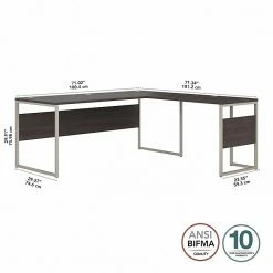 The Bush Business Furniture Hybrid L-shaped table desk blends a durable work surface with sturdy metal legs to offer a stylish, long-lasting solution for the modern professional. Tackle your next project or assignment with a computer, books, and more on a desktop that supports up to 200 lbs. Four built-in wire management grommets keep cords and cables in order, so your work area remains free from unnecessary clutter. The corner desk’s open leg design and finished privacy panel allows it to look great facing any direction in a home or professional office environment. This modern computer desk has been meticulously tested to meet or exceed the ANSI/BIFMA standards for safety, durability, and performance and is backed by a 10-year manufacturer warranty. American-made with US and imported parts.