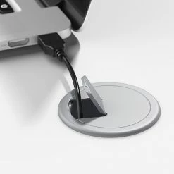 - Desktop includes four built-in wire management grommets to keep cords and cables out of the way