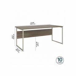 The Bush Business Furniture Hybrid 72″W x 36″D computer table desk blends a durable work surface with sturdy metal legs to offer a stylish, long-lasting solution for the modern professional. Tackle your next project or assignment with a computer, books, and more on a desktop that supports up to 200 lbs. Three built-in wire management grommets keep cords and cables in order, so your work area remains free from unnecessary clutter. The computer desk’s open leg design and finished privacy panel allow it to look great facing any direction in a home or professional office. Find the perfect look for your space with five finish options: black walnut, modern hickory, platinum gray, storm gray, and white. This modern desk has been meticulously tested to meet or exceed ANSI/BIFMA quality standards for safety, durability, and performance and is backed by the Bush Business Furniture 10-year manufacturer warranty. See the full Hybrid collection for coordinating items to enhance your workspace as needed, including bookcases, lateral file cabinets, and storage cabinets (coordinating items sold separately). American-made with US and imported parts.