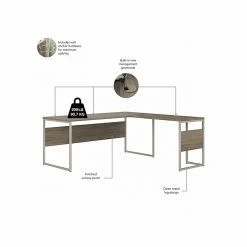 The Bush Business Furniture Hybrid L-shaped table desk with three-drawer mobile file cabinet blends a durable work surface with sturdy metal legs to offer a stylish, long-lasting solution for the modern professional. Tackle your next project or assignment on a desktop that supports up to 200 lbs. and has four built-in wire management grommets to keep cords and cables in order. The corner computer desk’s open leg design and finished privacy panel allow it to look great facing any direction in a home or professional office. The file cabinet’s bottom drawer holds letter-, legal-, and A4-size paperwork, while two box drawers organize supplies. This L-shaped desk with drawers has been meticulously tested to meet or exceed ANSI/BIFMA standards for safety, durability, and performance and is backed by a 10-year manufacturer warranty. American-made with US and imported parts.