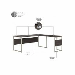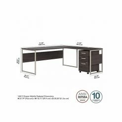 The Bush Business Furniture Hybrid L-shaped table desk with three-drawer mobile file cabinet blends a durable work surface with sturdy metal legs to offer a stylish, long-lasting solution for the modern professional. Tackle your next project or assignment on a desktop that supports up to 200 lbs. and has four built-in wire management grommets to keep cords and cables in order. The corner computer desk’s open leg design and finished privacy panel allow it to look great facing any direction in a home or professional office. The file cabinet’s bottom drawer holds letter-, legal-, and A4-size paperwork, while two box drawers organize supplies. This L-shaped desk with drawers has been meticulously tested to meet or exceed ANSI/BIFMA standards for safety, durability, and performance and is backed by a 10-year manufacturer warranty. American-made with US and imported parts.