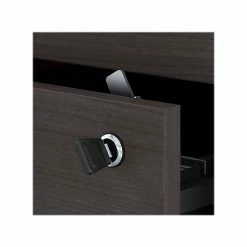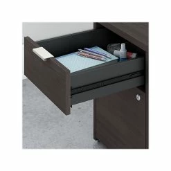 From large corporations to a single workspace, the Bush Business Furniture Jamestown 60″W computer desk with four drawers meets the needs of any professional office. With its contemporary style and adaptable modular design, this desk is built to meet the ever-changing demands of today’s professional workplace. Supported by a pair of two-drawer file cabinets, the elevated desktop provides plenty of room to spread out with materials, while a 200-pound weight capacity accommodates multiple monitors and other equipment. Each filing cabinet features one file drawer that opens on full-extension ball-bearing slides for an effortless reach to legal-, letter- and A4-size paperwork. Two box drawers keep office supplies organized and accessible, and all four drawers can be locked to secure sensitive documents and valuable items. This desk with storage is tested to meet ANSI/BIFMA standards for safety and performance and is backed by a 10-year manufacturer limited warranty.