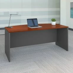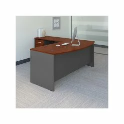 From large corporations to a single workspace, the Bush Business Furniture Jamestown 60″W computer desk with four drawers meets the needs of any professional office. With its contemporary style and adaptable modular design, this desk is built to meet the ever-changing demands of today’s professional workplace. Supported by a pair of two-drawer file cabinets, the elevated desktop provides plenty of room to spread out with materials, while a 200-pound weight capacity accommodates multiple monitors and other equipment. Each filing cabinet features one file drawer that opens on full-extension ball-bearing slides for an effortless reach to legal-, letter- and A4-size paperwork. Two box drawers keep office supplies organized and accessible, and all four drawers can be locked to secure sensitive documents and valuable items. This desk with storage is tested to meet ANSI/BIFMA standards for safety and performance and is backed by a 10-year manufacturer limited warranty.