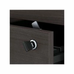 - Desk file drawer and lateral filing cabinet accept legal-, letter-, and A4-size documents; two drawers lock to protect sensitive information