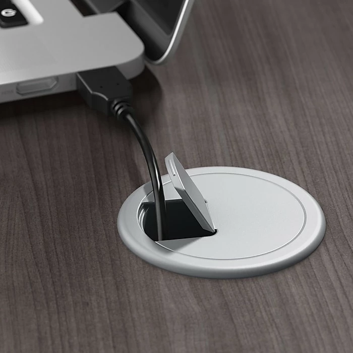 - Desk surface includes five built-in wire management grommets to keep cords and cables in order