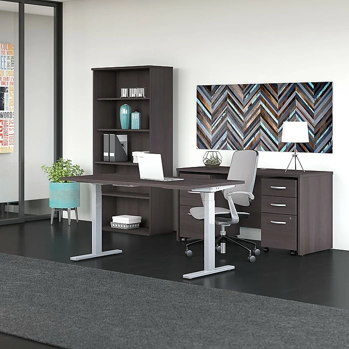 The Bush Business Furniture Studio C 60W Credenza Desk gives you just the right amount of workspace with a sturdy design and refreshing finish you’ll love. A durable thermally fused laminate construction stands up to your 40-plus hour work week, resisting scratches, stains and dents to look great for years. Clean lines and an extended modesty panel create a classic desk design but a contemporary White or Storm Gray finish fits the style needs of the modern office. Spread out on the 60 inch desk surface with your computer, notebook and more for a productive day, or add coordinating items from Studio C to create a larger configuration for all the multitasking space you need. This contemporary office furniture comes with a 10 Year Warranty and meets ANSI/BIFMA quality test standards. See the full collection for coordinating items available to make your office your own with Studio C. American made with U.S. and imported parts.