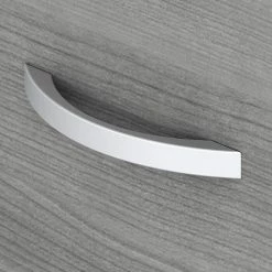 - Made of laminate over composite wood and comes in a platinum gray finish