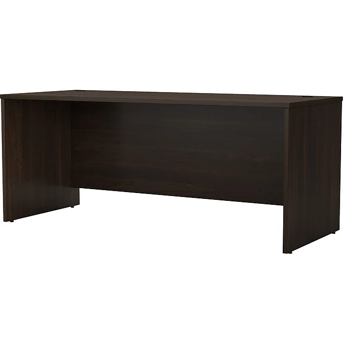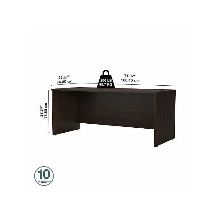 Choose the Bush Business Furniture Studio C 72″W office desk for a durable design that works hard for years with a fresh finish that looks great anywhere. A thick surface, an extended modesty panel, and clean lines convey a classic look that’s available in several contemporary or traditional finishes to fit any workspace. The thermally fused laminate finish, durable edge banding, and sturdy end panels resist scratches, stains, and dents while standing up to the rigors of a 40-plus hour work week. Keep pesky computer cords out of your way with an integrated cable management system for an organized work surface. This computer desk is backed by a 10-year manufacturer’s warranty and meets ANSI/BIFMA quality test standards for safety and performance. See the full collection for coordinating items available to make your office your own with Studio C. American made with U.S. and imported parts.