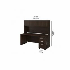 - Bundle includes: 72″W x 30″D office desk, 72″W hutch, and three-drawer mobile file cabinet