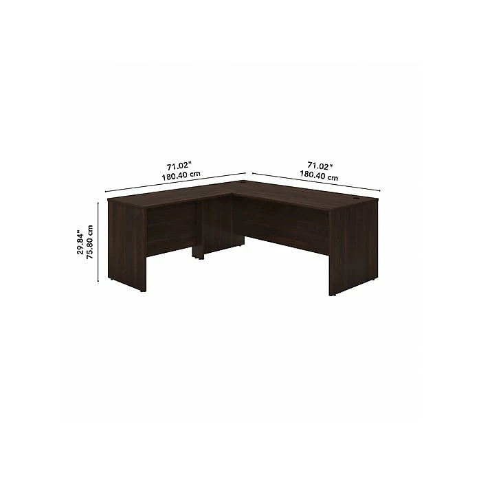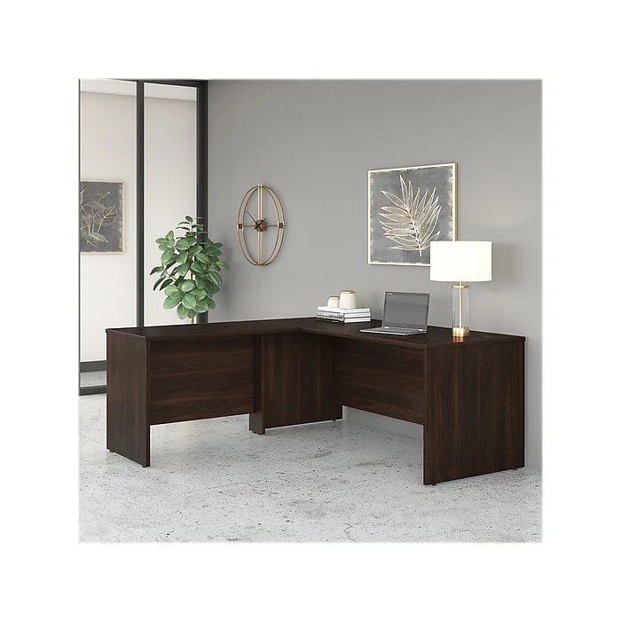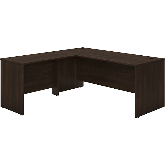 Highlighted by its contemporary style and commercial quality design, the Bush Business Furniture Studio C 72″W L-shaped desk with 42″W return presents a great workspace for a modern professional. Take advantage of the spacious surface to spread out with a computer, paperwork, and more as you tackle your next big project. The L-shaped desktop easily accommodates multiple monitors and other materials with a 200 lb. weight capacity and built-in wire management grommets. Position the L-shaped desk in a corner to save space in a small private office, or make use of the finished back to face outward in an open-plan environment. The return can be installed on either side of the main work surface for a right- or left-handed configuration. This corner desk is tested to meet ANSI/BIFMA standards for safety and performance and is backed by a 10-year manufacturer limited warranty. American-made with US and imported parts.