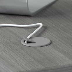 - Thermally fused laminate over composite wood in a platinum gray finish