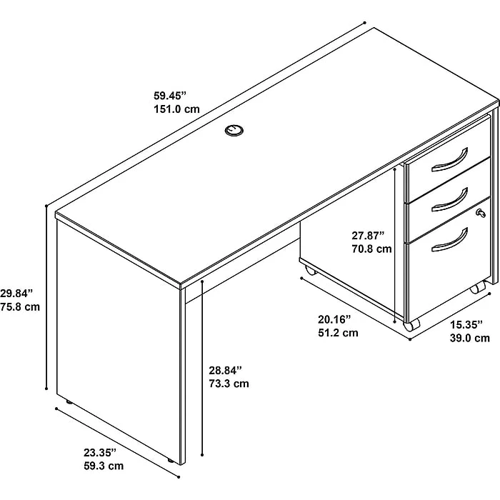 The options are endless with Bush Business Furniture Series C. Get started with this 60W Office Desk, or expand your workspace as required with a complete line of coordinated products and accessories. This commercial-grade Desk boasts quality craftsmanship, a sturdy construction, thermally fused laminate finish and rugged edge banding for years of reliability. Depend on the convenient Mobile File Cabinet for storing your office supplies and documents. Slide the Cabinet under the Desk or roll it wherever you want. A full-extension file drawer makes it easy to access letter, legal and A4 documents. Brushed Nickel hardware, clean lines and extended modesty panels make a lasting impression. This affordable office furniture withstands the rigors of a 40-plus hour work week. Backed by a 10 Year Warranty. American made with U.S. and imported parts.